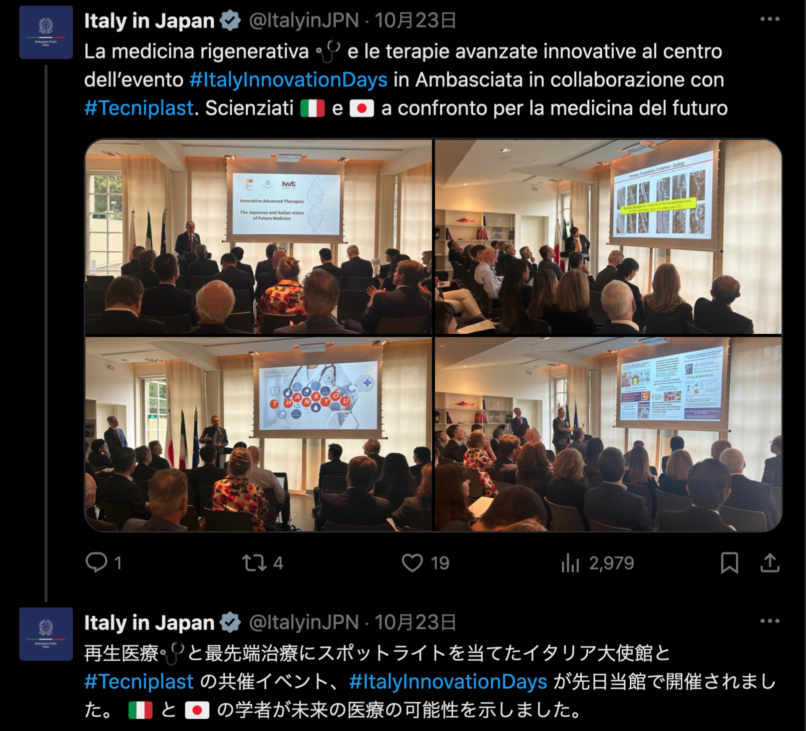 イタリア大使館のX記事 写真3
